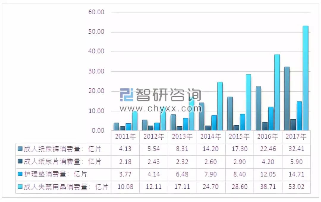 (2013-2017年中國(guó)成人紙尿褲市場(chǎng)需求及其他成人失禁用品需求量情況)