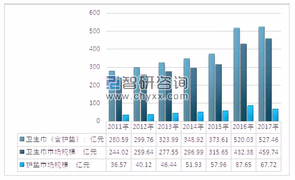 2012-2017年中國(guó)衛(wèi)生巾(含護(hù)墊)市場(chǎng)規(guī)模