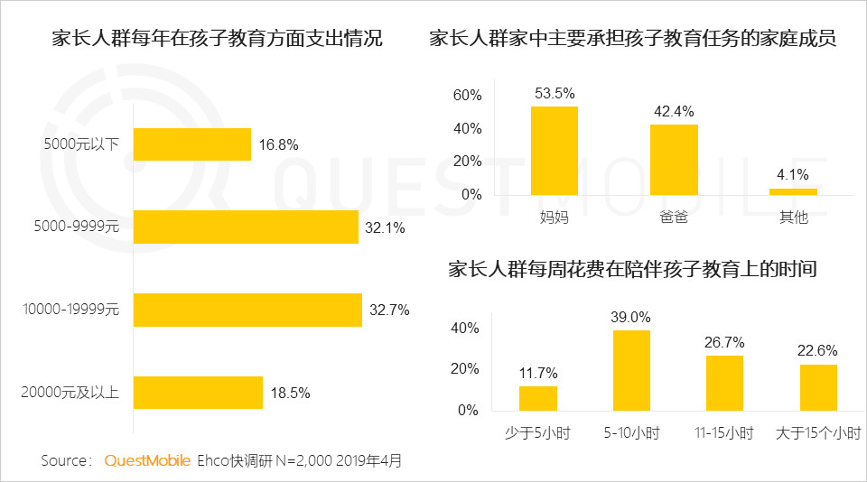 “低幼兒童家長(zhǎng)”(泛指0-6歲家長(zhǎng)人群)人群關(guān)注領(lǐng)域包括在線消費(fèi)、幼兒教育、育兒社區(qū)、親子旅游。2016年“全面二孩”政策實(shí)施以后,中國(guó)新生兒童數(shù)量經(jīng)歷了兩年快速增長(zhǎng)后有所回落,學(xué)齡前兒童數(shù)量維持穩(wěn)定態(tài)勢(shì),但二胎政策帶來(lái)人口利好,低幼經(jīng)濟(jì)價(jià)值凸顯,據(jù)QuestMobile數(shù)據(jù)顯示,目前中國(guó)0-6歲兒童人數(shù)約1億,0-6歲兒童消費(fèi)市場(chǎng)規(guī)模已超1.5萬(wàn)億,“低幼兒童家長(zhǎng)”用戶規(guī)??焖僭鲩L(zhǎng)已經(jīng)接近2.7億,在中國(guó)家庭中,超八成的家長(zhǎng)每年在孩子的教育方面支出均在5000元以上,“寶媽”是教育決策的主要決策者,也就是說,每年在那些呱呱哭叫的嬰幼兒的小手里,0-6歲的媽媽們足足攥著“真金白銀”。