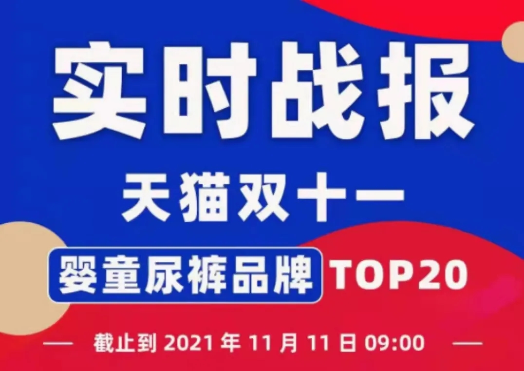 2021年10月20日晚8點(diǎn),天貓雙十一預(yù)售正式開啟,截止到11月11日9:00,天貓雙十一紙尿褲排名榜單TOP20出爐。