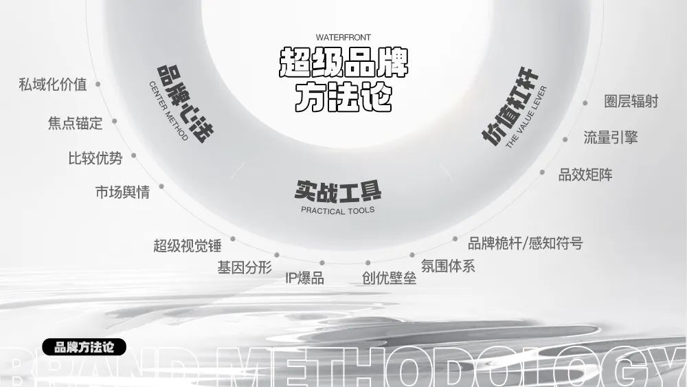 作為中國生活消費(fèi)品行業(yè)品牌管理服務(wù)商,立足于行業(yè)市場洞察和發(fā)展趨勢,在水一方潛心多年自主完善并建立了企業(yè)品牌方法論,重點(diǎn)圍繞品牌心法、實(shí)戰(zhàn)工具及價(jià)值杠桿構(gòu)建出全案品牌系統(tǒng)。