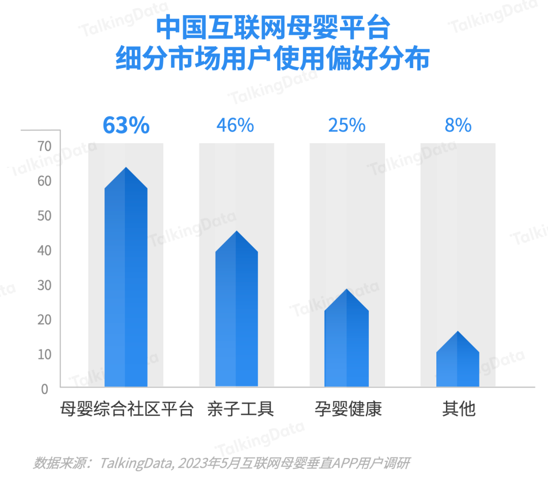 使用母嬰綜合社區(qū)的母嬰平臺用戶占比更高,達(dá)到63%,這表明用戶更偏愛涵蓋工具+社區(qū)等復(fù)合型垂直平臺。