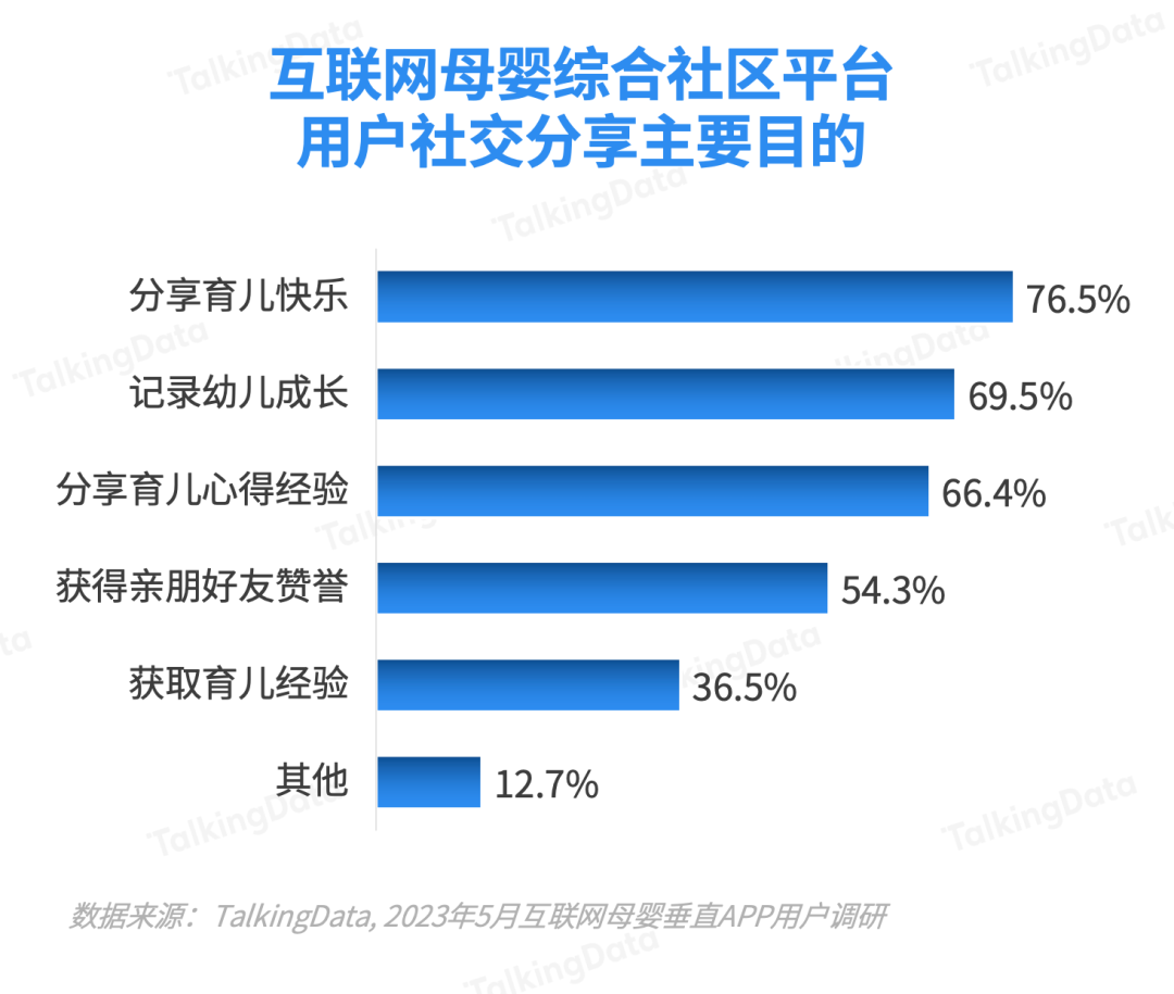 對于分享目的,超過7成用戶愿意分享育兒過程中的快樂和幸福,傳遞正能量;同時(shí),69.5%用戶是為了記錄孩子成長的過程,66.4%的用戶是為了分享育兒心得經(jīng)驗(yàn)。