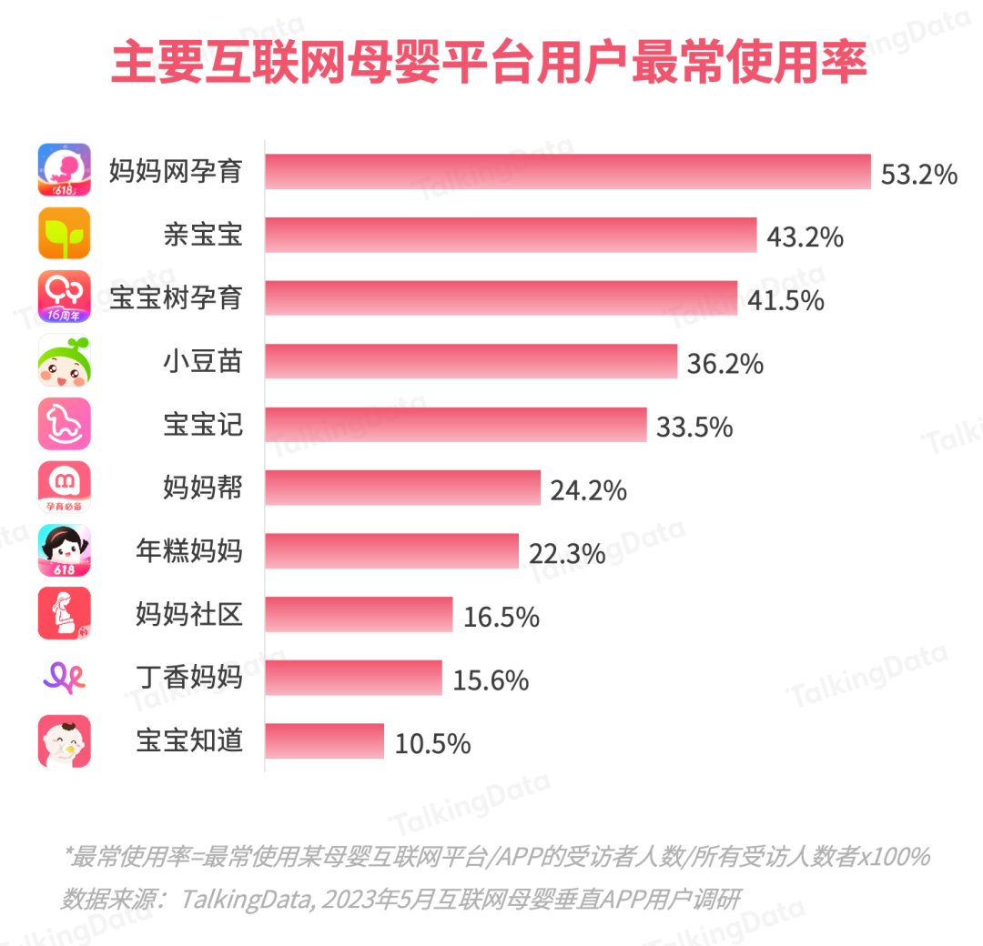 基于TalkingData的母嬰行業(yè)應(yīng)用數(shù)據(jù)及2023 年5月的調(diào)研數(shù)據(jù),報(bào)告對主要互聯(lián)網(wǎng)母嬰平臺的月活、認(rèn)知、使用等數(shù)據(jù)進(jìn)行了統(tǒng)計(jì)分析。