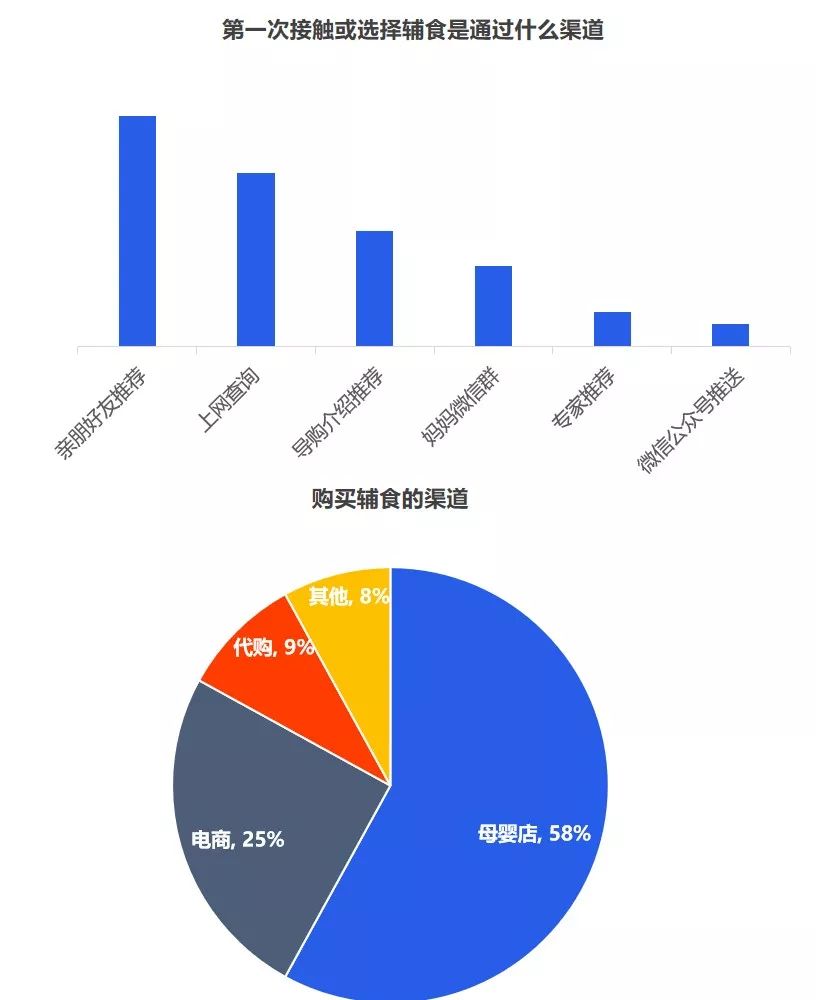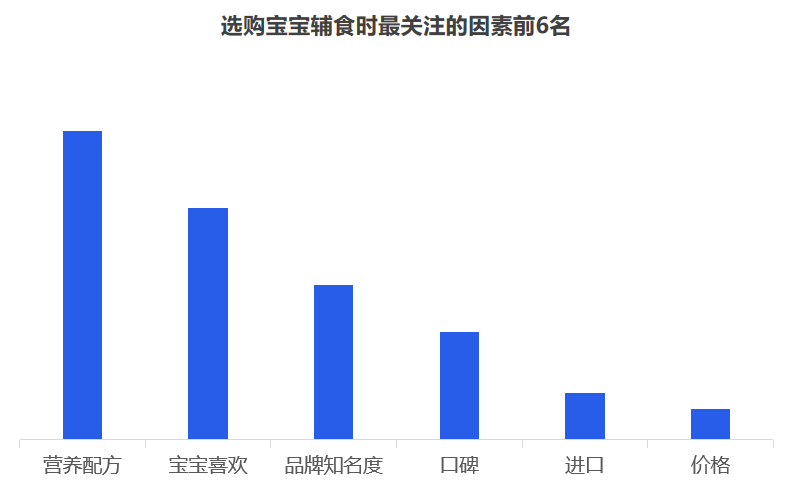 但是對(duì)于品牌而言,最重要的是洞察需求,一個(gè)好的洞察,一定是清晰揭示消費(fèi)者的傾向,暗示了一個(gè)市場(chǎng)機(jī)會(huì)。究竟品牌入局輔食的機(jī)會(huì)有多大,媽媽們是如何看待輔食的? 從當(dāng)前的嬰幼兒用品的采購(gòu)情況來(lái)看,媽媽負(fù)責(zé)嬰幼兒用品的采購(gòu),用戶(hù)占比超七成。奶爸也會(huì)經(jīng)常協(xié)助寶媽?zhuān)瑓⑴c到嬰幼兒用品的采購(gòu)活動(dòng)中,用戶(hù)占比為41.7%。 從近一年的百度指數(shù)來(lái)看,目前關(guān)注輔食最突出的地域是廣州、浙江、江蘇、山東、北京等,可見(jiàn),當(dāng)前一二線(xiàn)城市的消費(fèi)者對(duì)輔食的認(rèn)知教育有所提高,但是低線(xiàn)城市的消費(fèi)者對(duì)寶寶輔食的添加還不重視。 其次,從年齡段來(lái)看,“30-39歲”的消費(fèi)人群對(duì)輔食的關(guān)注度最高,而在這其中,女性對(duì)輔食的關(guān)注度遠(yuǎn)高于男性。 2019年母嬰行業(yè)觀(guān)察通過(guò)線(xiàn)上調(diào)研近10000人數(shù)的家長(zhǎng)進(jìn)行了輔食調(diào)查,其中80后占據(jù)24%,85后占據(jù)26%,90后44%,95后4%,對(duì)輔食的態(tài)度如下: 1、幾乎所有的媽媽都認(rèn)為有必要給寶寶添加輔食,并且有一半的媽媽認(rèn)為要在6個(gè)月時(shí)添加,而有32%的媽媽認(rèn)為在6個(gè)月-1歲開(kāi)始添加,還有16%的人在6個(gè)月以前就添加輔食。 2、大部分寶寶的輔食來(lái)源都是“購(gòu)買(mǎi)與自制”相結(jié)合,而在購(gòu)買(mǎi)輔食時(shí),媽媽們購(gòu)買(mǎi)最多的類(lèi)型依舊是米粉,其次則是餅干、磨牙棒等小食品、營(yíng)養(yǎng)面等。 3、互聯(lián)網(wǎng)與社交圈對(duì)媽媽的購(gòu)買(mǎi)決策權(quán)的影響力較大,據(jù)調(diào)查顯示,媽媽們第一次接觸或選擇輔食大多都是通過(guò)親朋好友推薦,上網(wǎng)查詢(xún)等。當(dāng)然消費(fèi)者在購(gòu)買(mǎi)嬰兒輔食的渠道選擇上,其實(shí)與奶粉并無(wú)不同,為了保證產(chǎn)品的質(zhì)量和安全性,同時(shí)也為了可以得到育嬰專(zhuān)家的指導(dǎo)和幫助,消費(fèi)者更傾向于在專(zhuān)業(yè)的母嬰用品連鎖店或主流電商平臺(tái)購(gòu)買(mǎi)食品。 4、隨著85后、90后新生代父母的崛起,他們與父輩的消費(fèi)觀(guān)念并不相同,不再執(zhí)著與于進(jìn)口與價(jià)格等,而是開(kāi)始關(guān)注是營(yíng)養(yǎng)配方,重要的是寶寶喜歡。 5、對(duì)于寶寶而言,自添加輔食開(kāi)始,都是與奶粉喂養(yǎng)相結(jié)合,目前超一半的寶寶每天食用輔食的頻率都是一天兩頓。當(dāng)然這在一定程度上也決定了每個(gè)月在寶寶的輔食上的花費(fèi)是多少,從月消費(fèi)來(lái)看,可以明顯看出200以?xún)?nèi)的將近半數(shù),當(dāng)然也可以看出花費(fèi)在300以上的有21%,可見(jiàn),對(duì)于嬰兒食品這個(gè)特殊的品類(lèi),以及嬰幼兒這個(gè)特殊的消費(fèi)人群,消費(fèi)持續(xù)升級(jí)仍然明顯。近兩年來(lái),嬰幼兒輔食高端化、有機(jī)化趨勢(shì)明顯。 近幾年來(lái),越來(lái)越多的媽媽意識(shí)到輔食的重要性,隨著我國(guó)居民可支配的收入不斷提高,消費(fèi)者投入了更多的關(guān)注給自己的孩子,作為寶寶的第二餐,消費(fèi)者愿意投入更多費(fèi)用,使用周期會(huì)不斷變長(zhǎng),且更注重輔食產(chǎn)品的品質(zhì)和質(zhì)量??梢?jiàn)隨著消費(fèi)水平的提升,年輕父母對(duì)于對(duì)孩子的飲食質(zhì)量、飲食營(yíng)養(yǎng)的投入更加重視,會(huì)更追求高附加值、高品質(zhì)的輔食,中國(guó)輔食市場(chǎng)會(huì)繼續(xù)高速發(fā)展。